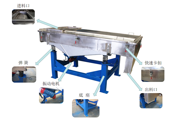 大型直线振动筛的筛箱采用高强度钢板焊接结构,确保在大负载下依然保持稳定。振动频率一般为960~1450次/分钟,振幅在4~8mm之间,可根据物料特性调节,以实现最佳筛分效果。筛网是核心部件之一,其类型包括编织网、冲孔网、聚氨酯筛网、不锈钢筛网等。针对高磨损物料常选用聚氨酯筛网,而对卫生要求高的行业则多采用304或316L不锈钢筛网。驱动系统采用双振动电机反向同步驱动方式,使筛箱产生直线往复运动,从而推动物料向前直线运动,实现均匀分级。
