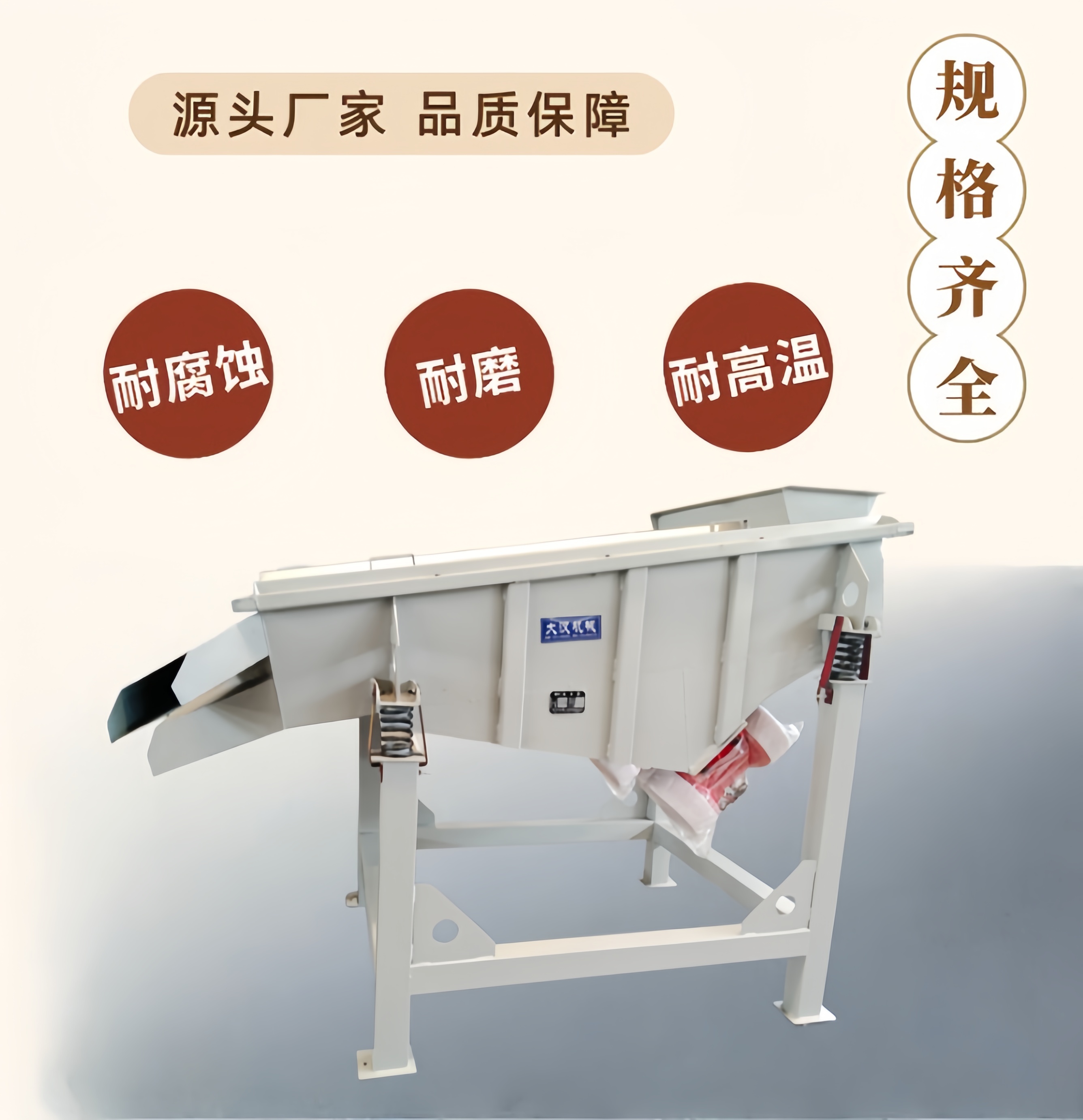大汉振动机械拥有专业研发设计团队、标准化生产车间及全套加工检测设备。我厂生产的黄豆直线振动筛严格遵循食品粮油加工生产标准,所有设备出厂前均经过试机检测、振动调试、筛分实测,确保设备质量达标、性能稳定、筛分效果优异。支持不同时产、层级、材质、规格设备定制加工,可根据客户厂房场地、加工需求、生产线工况量身定制适配方案,无中间商厂家直销,设备性价比高,同时提供上门安装调试、操作培训、易损件提供等服务。