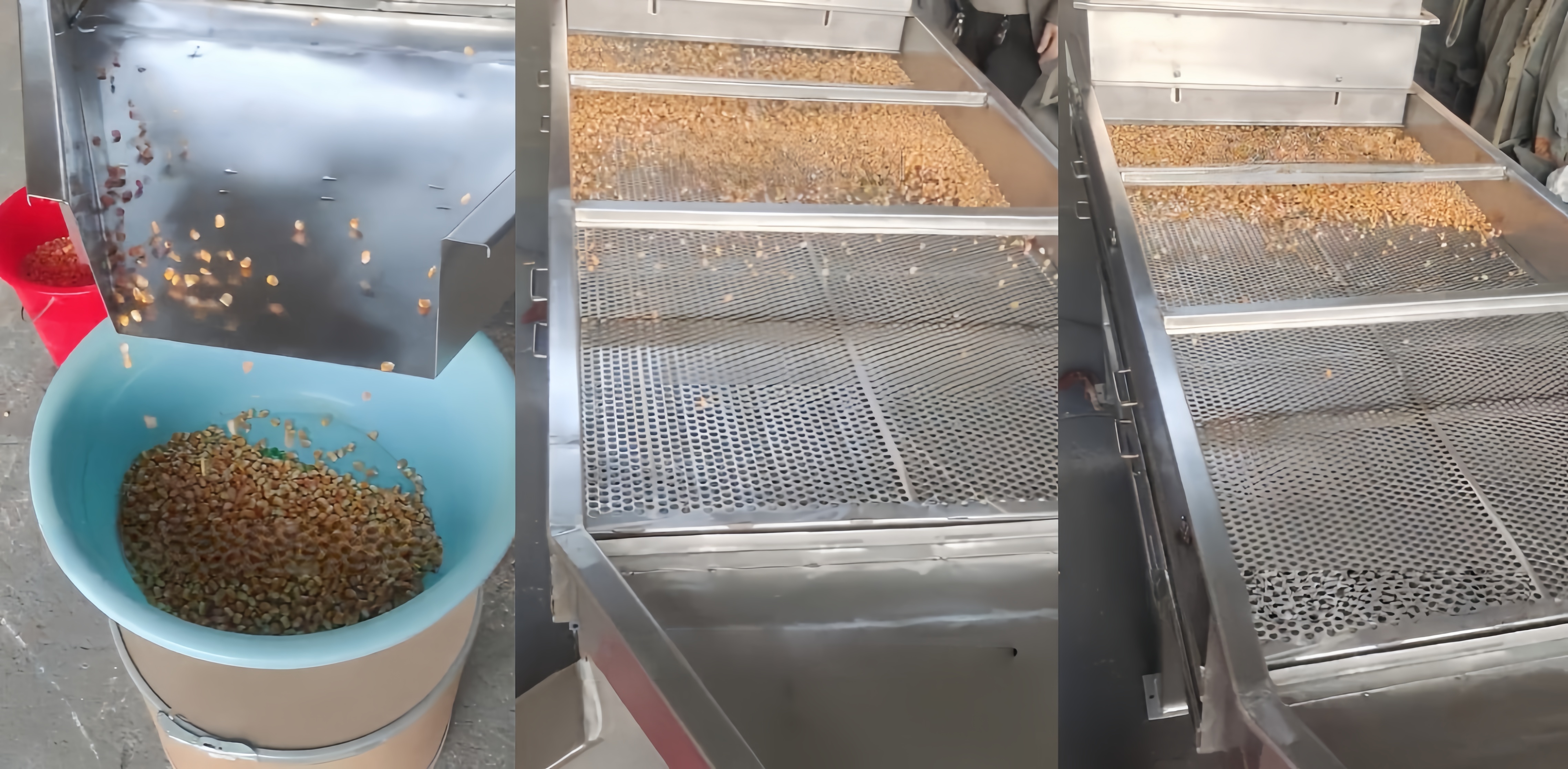 河南商丘一家大型粮油深加工企业,主营黄豆精选、黄豆杂粮分装及黄豆粉加工业务,采购的我司DZSF型黄豆直线振动筛,设备配置2层筛分层级,筛网采用食品级304不锈钢材质,上层网孔设置8mm、下层网孔设置4mm,适配黄豆分级除杂需求;搭配两台2.2kw专用防尘振动电机,整机碳钢机架加不锈钢筛面组合配置,设备投入使用后,实际每小时黄豆处理时产可达4吨,上层筛网筛分剔除大颗粒石子、秸秆、结块坏豆,下层筛网筛除灰尘碎渣、细小杂质,中间层级产出达标优质黄豆。